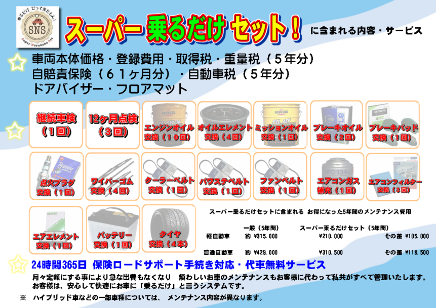 月々定額のマイカーリース スーパー乗るだけセット